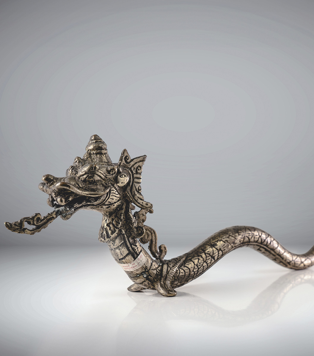 Aparece en tradiciones hindúes como reina benevolente de los Nagas, seres semidivinos serpenteantes del inframundo (Patala), guardianes de aguas sagradas, tesoros y fertilidad. Vinculada a Lakshmi (diosa hindú de la prosperidad) y deidades como Vishnu (dios que mantiene el orden cósmico) y Shiva (dios benefactor y destructor que todo lo puede), simboliza renovación, como la muda de piel de las serpientes, y sabiduría terrenal.