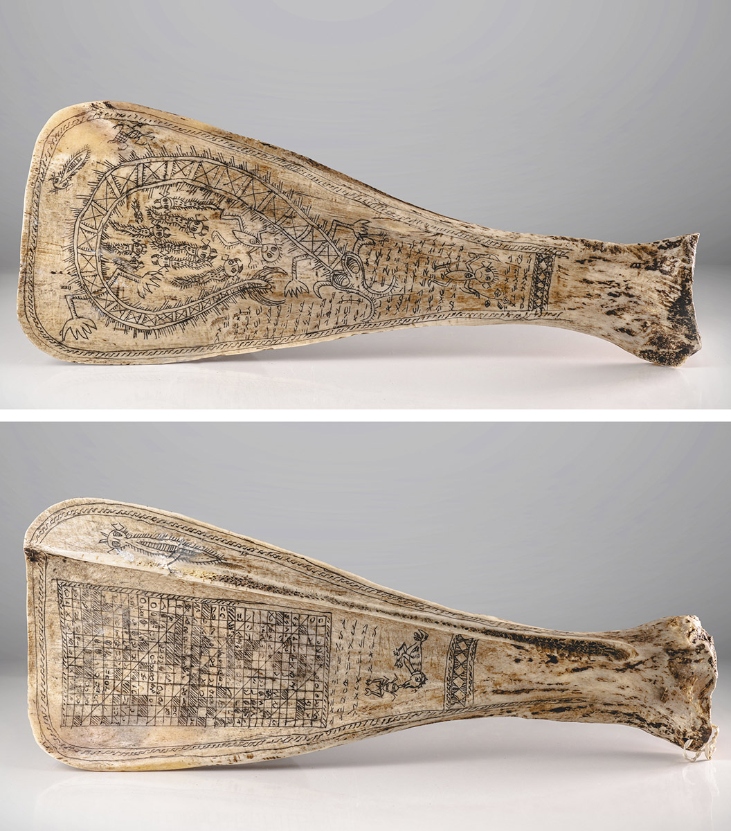 Omoplato de cerdo con incisiones en anverso y reverso. Siglo XX.