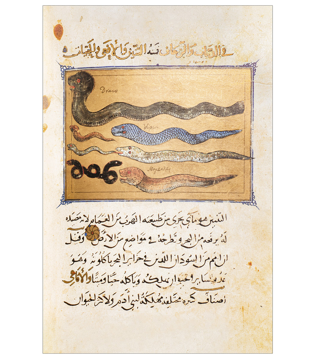 El libro de las utilidades de los animales, atribuido a Ibn al-Durayhim, siglo XIV, es un tratado de zoología aplicada propio del mundo islámico medieval. El texto reúne conocimientos sobre los usos medicinales y económicos de diversas especies animales, describiendo la aplicación terapéutica de partes del cuerpo animal —grasas, huesos, sangre o leche— en la farmacología y la práctica curativa. En este sentido, hay un capítulo dedicado a los beneficios de la carne de las serpientes.