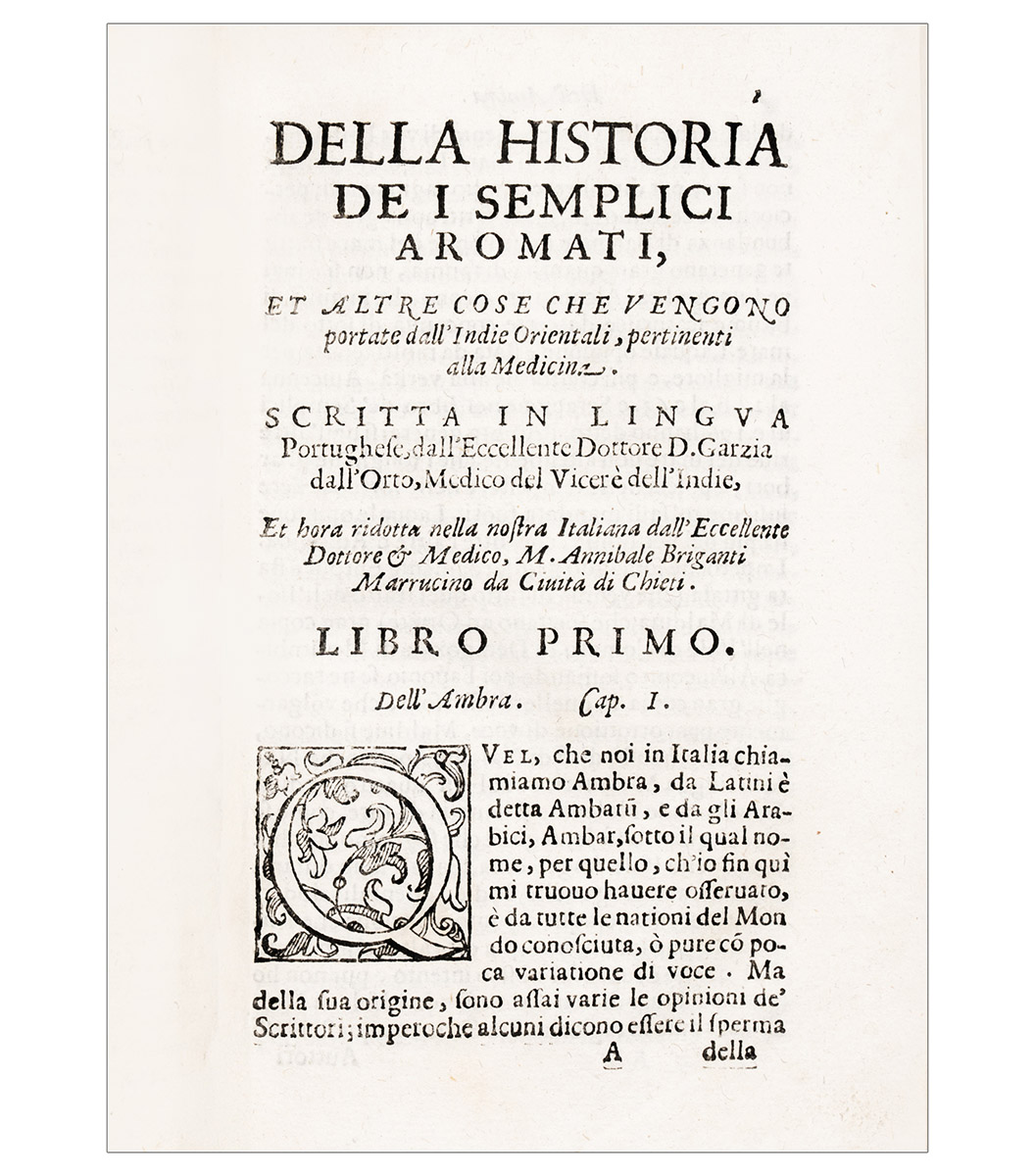 Due libri dell’Historia de i semplici, aromati, et altre cose, che vengono portare dall’Indie Orientali pertinenti all’uso della Medicina. In Venetia: Appresso Francesco Ziletti, 1582.