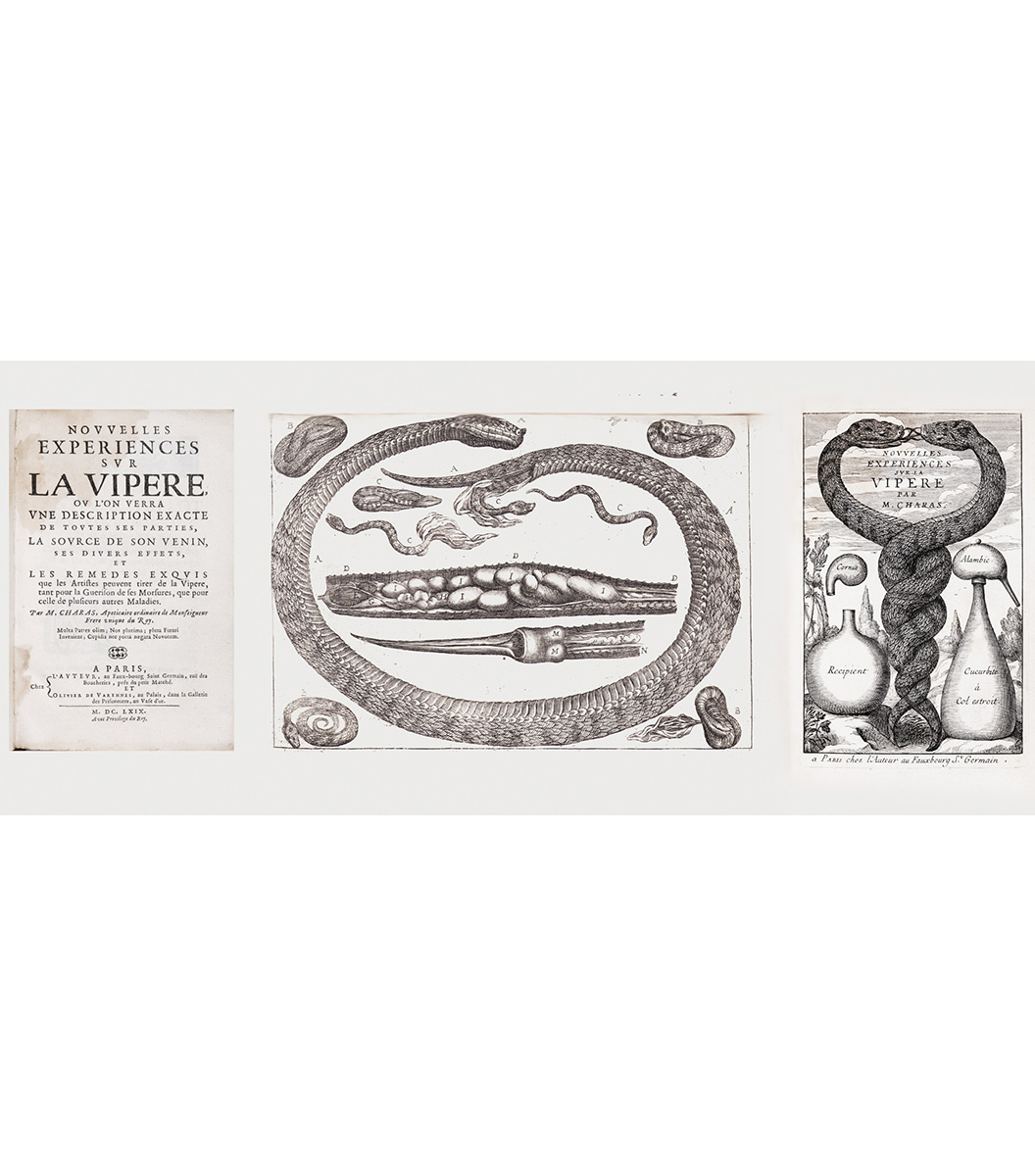 Redi publicó su Opusculorum. Experimenta circa varias res naturales en 1636 y en él incluía sus primeras Observationes de viperis junto con la traducción al latín de su obra de 1664 sobre el veneno de las víboras. El texto de 1664 había inaugurado una gran controversia sobre la utilidad de la carne de víbora en la triaca, en especial con Moyse Charas, cuyo libro está expuesto también. En un momento llega a decir: “… porque cada vez me doy más cuenta de lo difícil que es espiar la verdad defraudada por mentiras, y de que muchos escritores, tanto antiguos como modernos, se parecen a esas ovejitas…”.