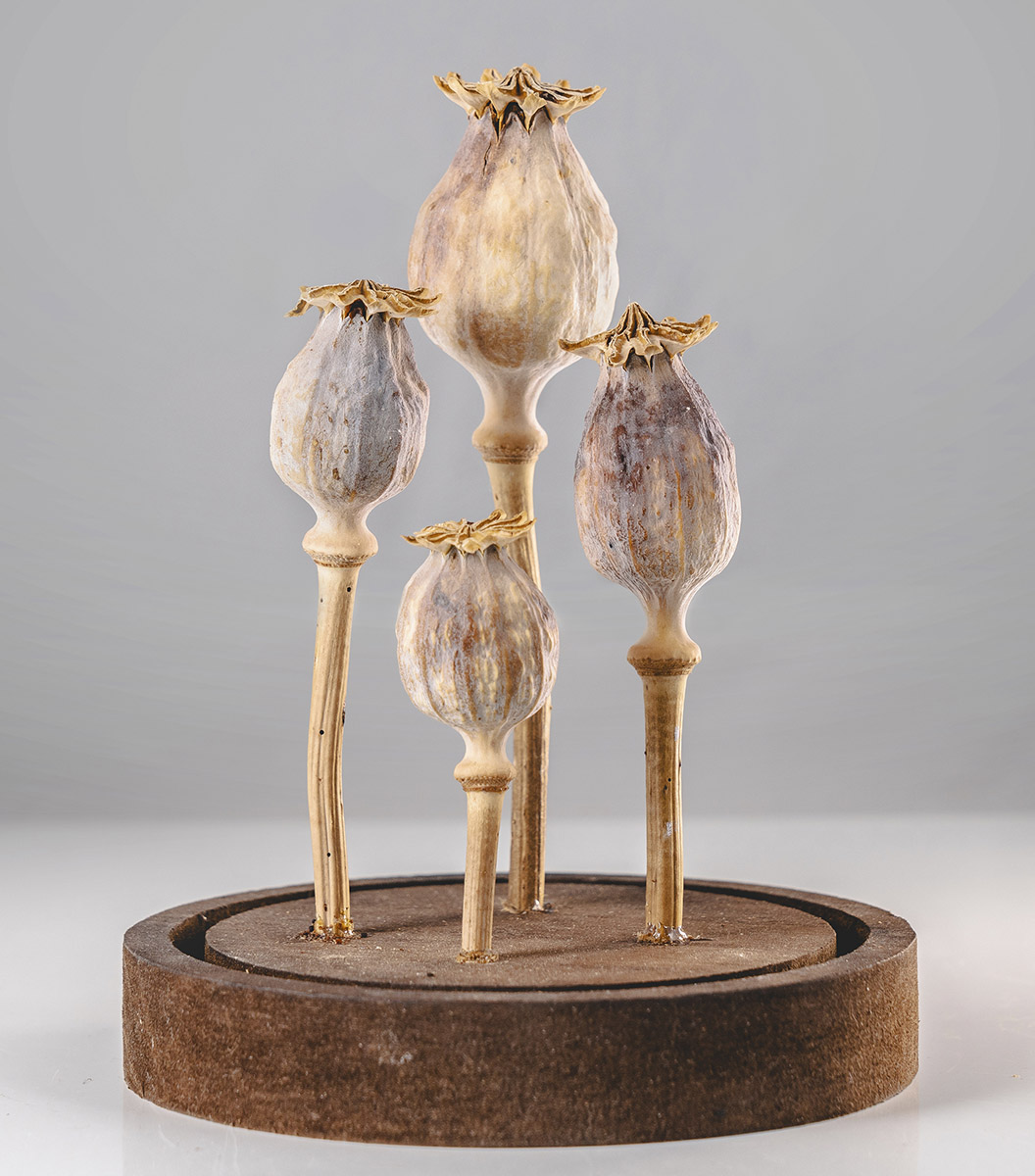 Papaver somniferum, adormidera natural seca. Siglo XXI.