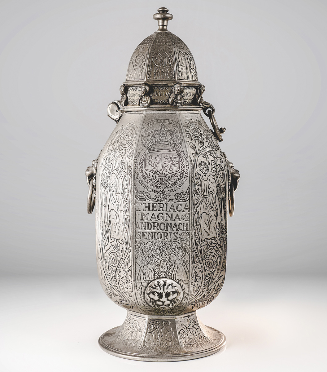 Contenedor de farmacia para la maceración de la triaca. Perteneciente a la botica del Colegio de los Jesuítas de Toulouse, Francia.