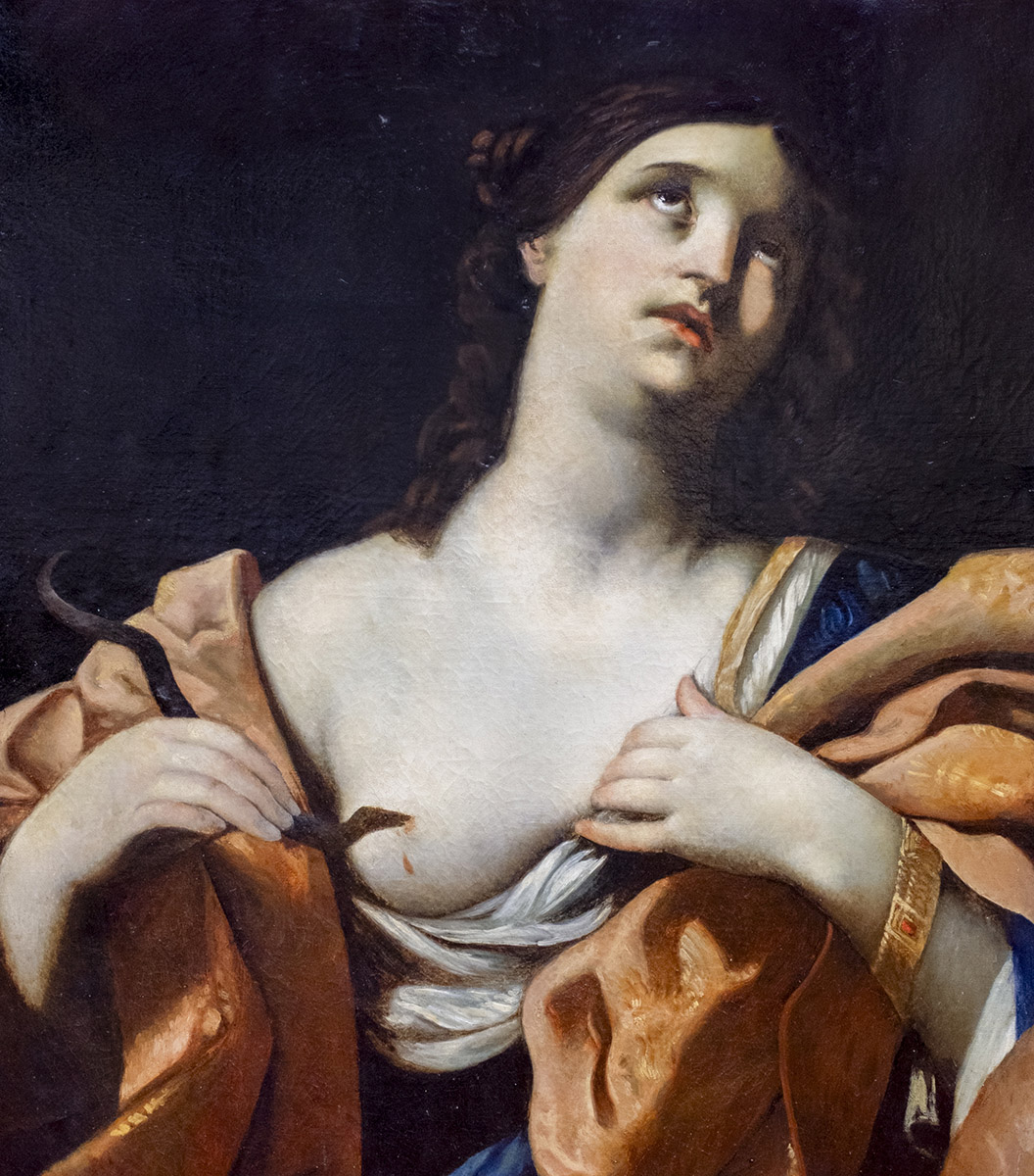 El suicidio de Cleopatra es un tema que ha interesado a muchos artistas, entre los pintores, a Guido Reni (1640, Museo del Prado), Leonardo da Pistoia (ci. 1540, Villa Borghese, Roma), a Giovanni Lanfranco (ci. 1630, Palazzo Barberini, Roma) y otros más.
