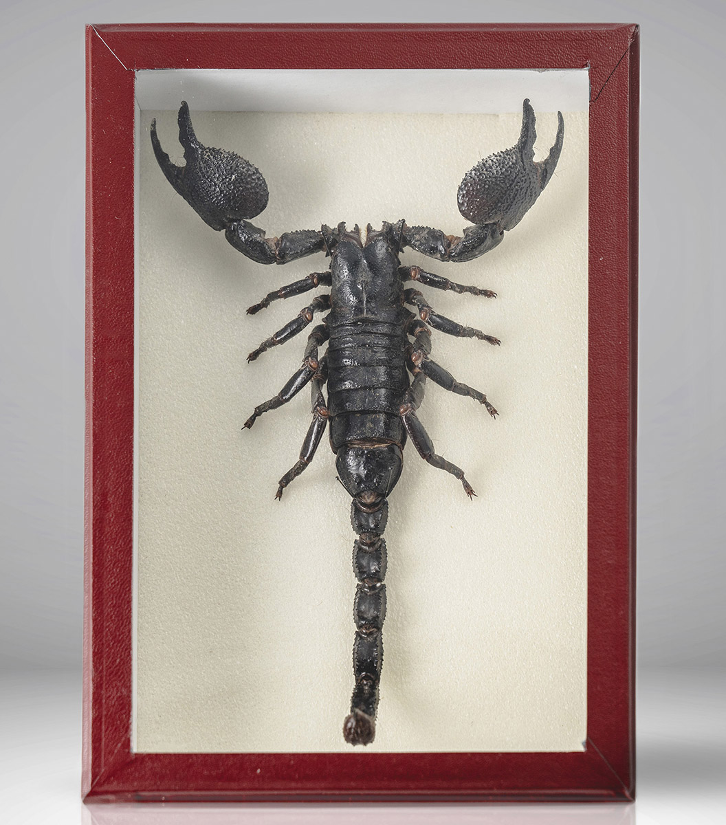 Los escorpiones son artrópodos depredadores, generalmente nocturnos y solitarios. Poseen un potente veneno que inyectan mediante un aguijón situado al final de la cola para inmovilizar a sus presas, aunque los machos de algunas especies también lo usan para facilitar el apareamiento reduciendo la agresividad de la hembra. A pesar de su aspecto imponente, el veneno de los escorpiones asiáticos del género Heterometrus es menos tóxico que el del escorpión amarillo, común en la península ibérica. Estas especies suelen capturar a sus presas con sus grandes pinzas, recurriendo al aguijón solo cuando es necesario. No suelen atacar al ser humano y los casos de envenenamiento son raros. Algunas toxinas de veneno de escorpión han dado lugar a interesantes aplicaciones médicas como el «Tumor paint», una herramienta que permite identificar tumores de manera muy precisa durante las cirugías. Esta herramienta se ha desarrollado a partir de la clorotoxina, que se une de forma específica a ciertas células tumorales.