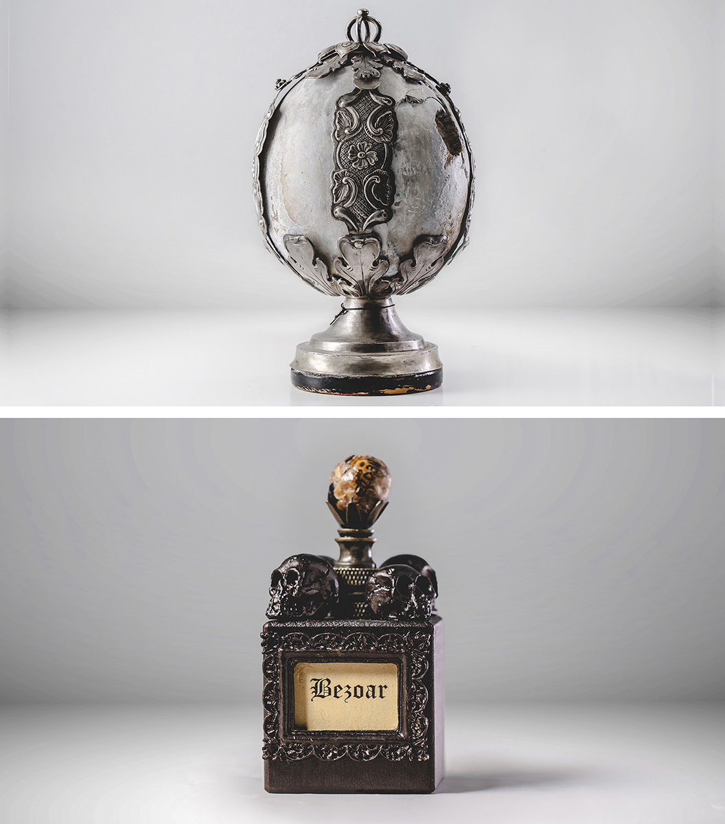 Piedra Bezoar esférica montada en plata (24 x 15 cm).