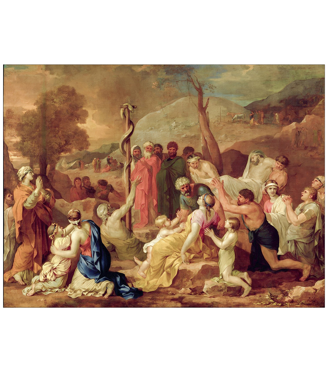 Las ciencias de la salud mantienen una estrecha relación iconográfica con la serpiente, símbolo ancestral de renovación, vida y conocimiento. En el centro de esta tradición se halla Esculapio (el Asclepio griego), hijo de Apolo y de la mortal Corónide. Criado por el centauro Quirón, Esculapio aprendió las artes curativas y superó a su padre, Apolo Iatros.