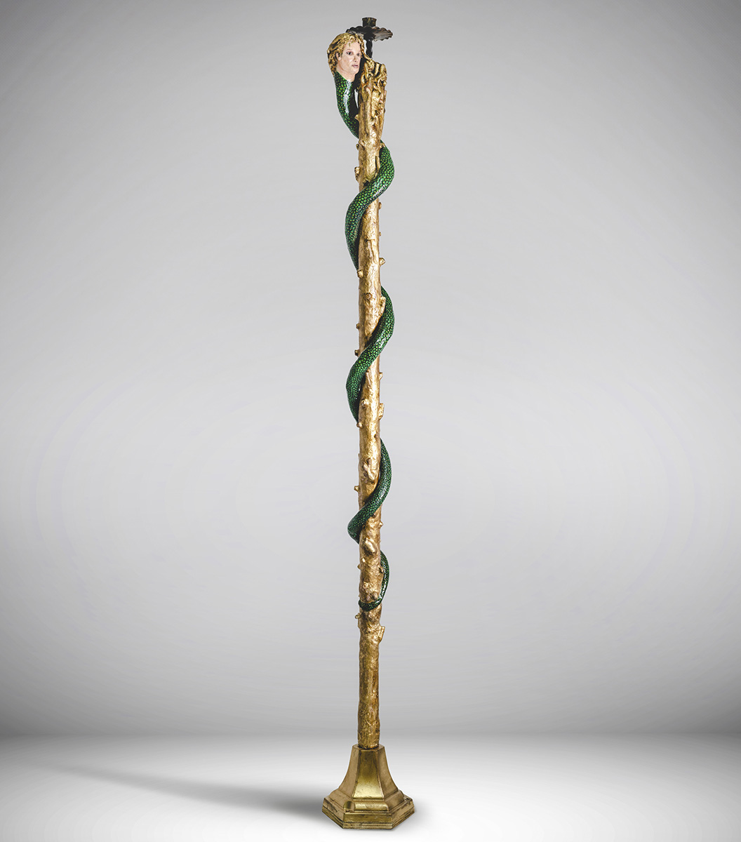 Denominada «serpiente-candelero», iconográficamente representa la fragilidad de la humanidad ante el pecado, pecado que se figura como una serpiente con cabeza de mujer, enrollada al que podría ser el Árbol de la Ciencia.